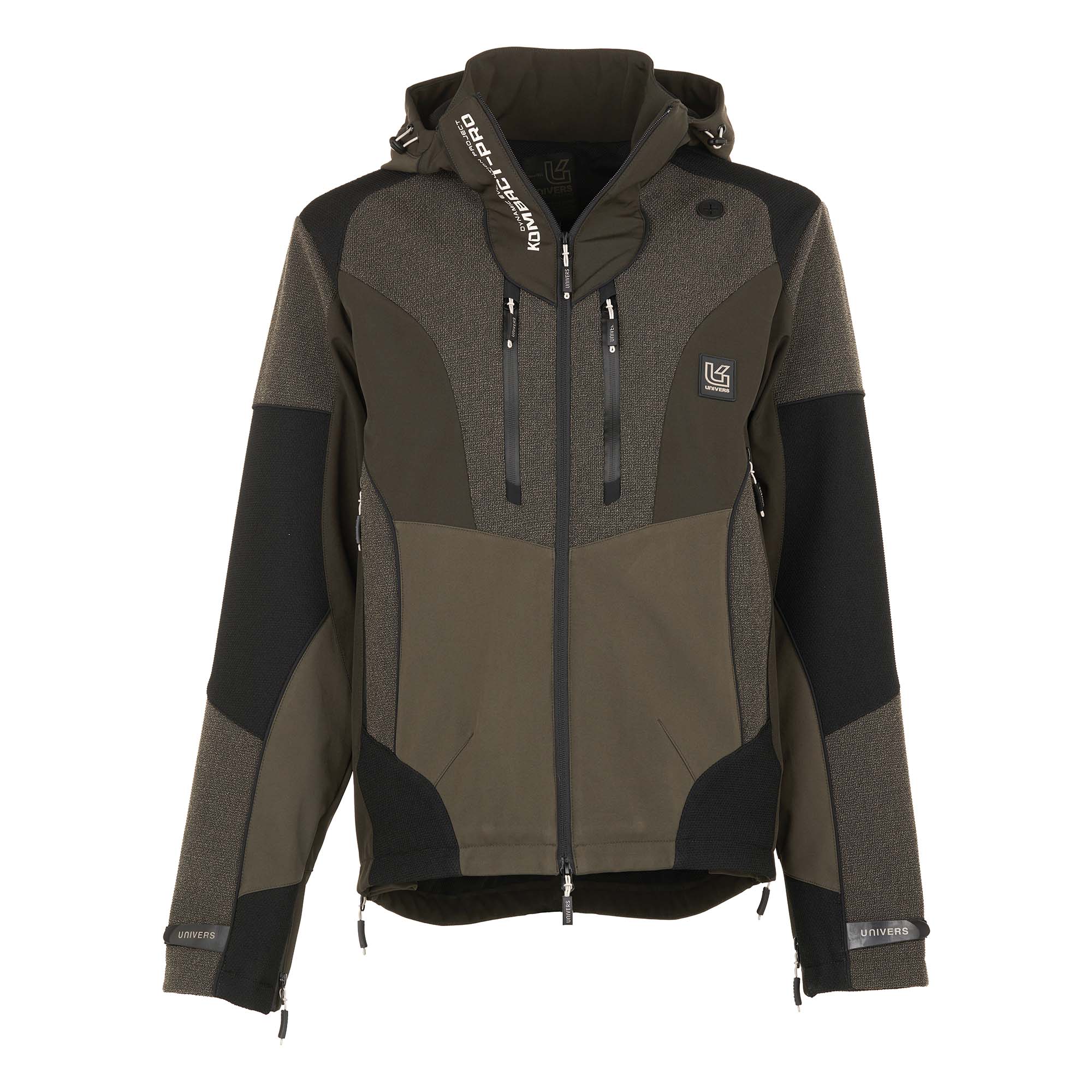 Veste de chasse Kombact Pro, imperméable et respirante, fabriquée en softshell doublé de polaire extensible avec membrane U-Tex. Des renforts RK-Tex aux points d’usure les plus forts. Quatre poches avant confortables avec fermetures éclair étanches, , poche interne , sac a gibier , fermetures éclairs latérales pour plus de confort, capuche amovible
