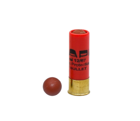 Type : GOMM-COGNE BALLE CAOUTCHOUC « SLUG PROTECTION » Cartouche de neutralisation individuelle non-létale, courte distance, destinée à neutraliser un individu choisi entre 10 et 30 m.