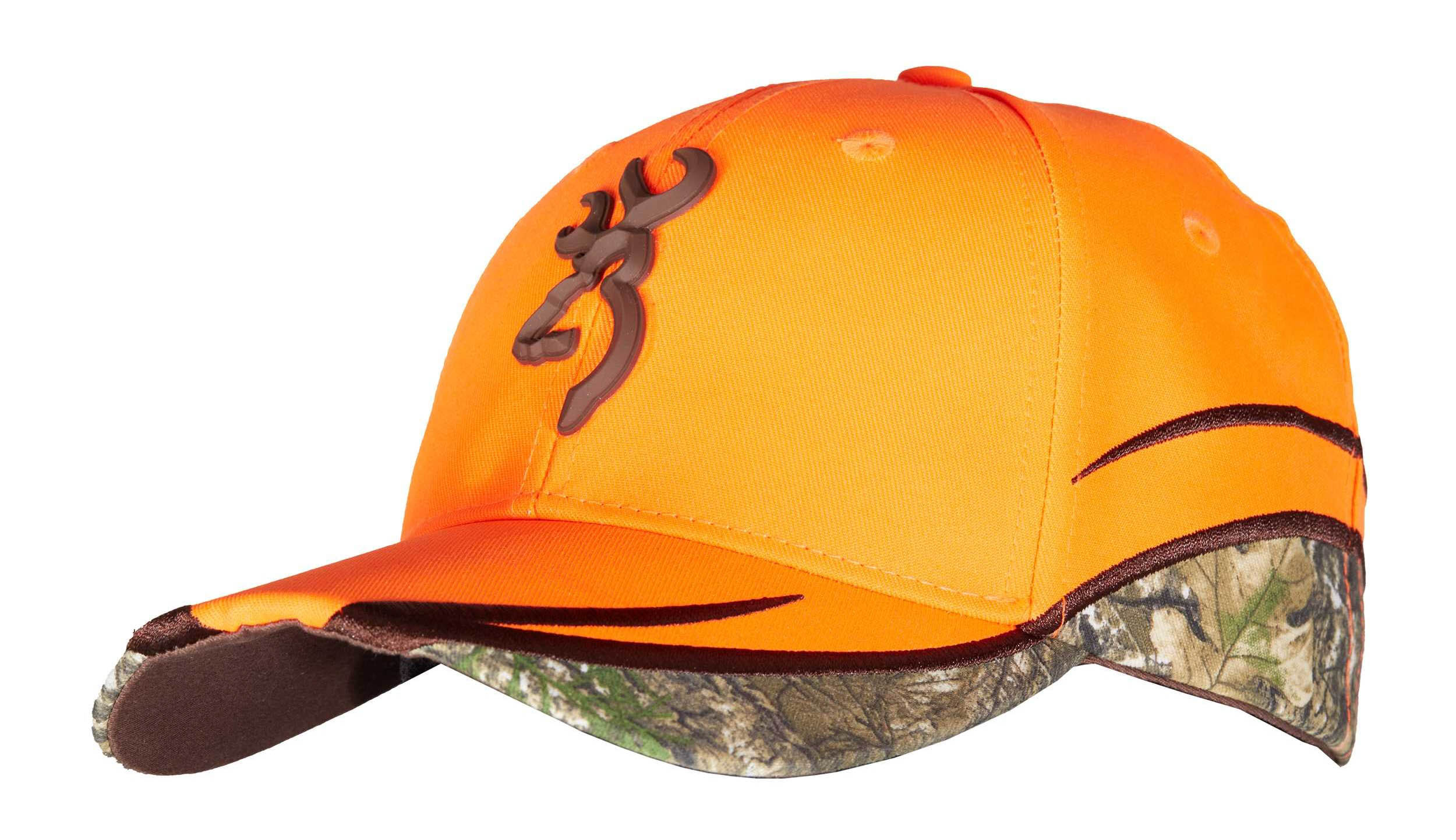 Casquette brodée du logo Browning sur la couronne. La couronne et la visière sont orange avec les rebords camo.