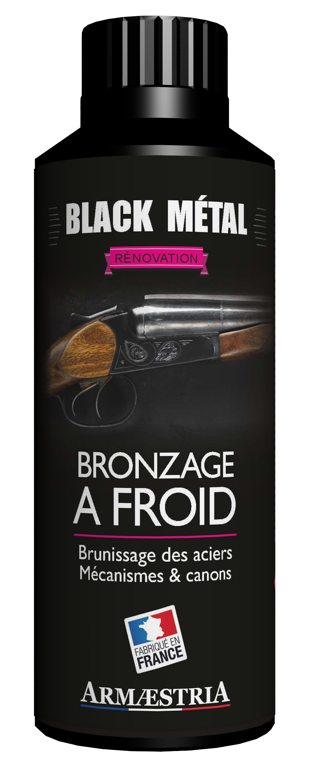 BLACK METAL est un produit de brunissage des aciers, des armes (fusils, pistolets...) à température ambiante, donnant un trés bel aspect noir bleuâtre.
