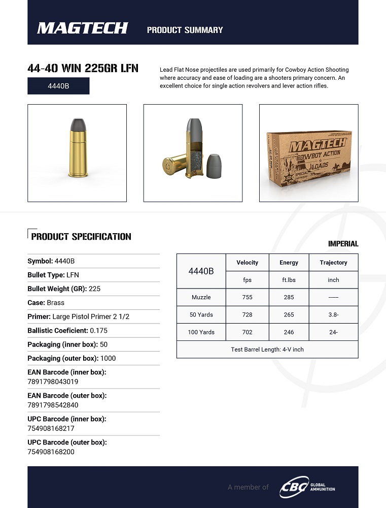 Les munitions à pointe plate en plomb sont utilisés principalement pour le tir d'action cow-boys, où la précision et la facilité de chargement sont les principales préoccupations des tireurs. Un excellent choix pour les revolvers à simple action et les fusils à levier.