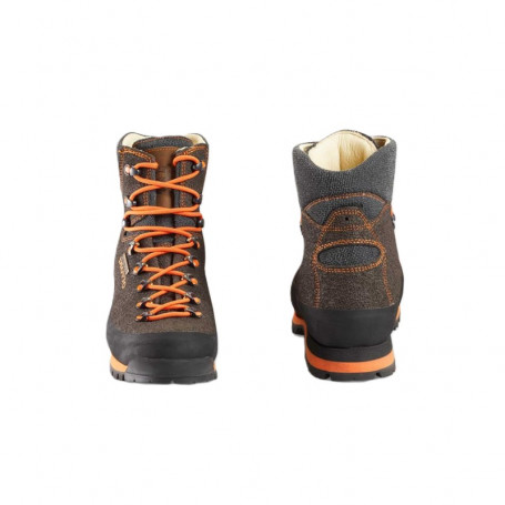 Chaussures de chasse Haute Visibilité en cuir naturel hydrofuge d'une seule pièce avec traitement polyuréthane qui lui confère un effet poreux protégeant la chaussure des ronces et des pierres.